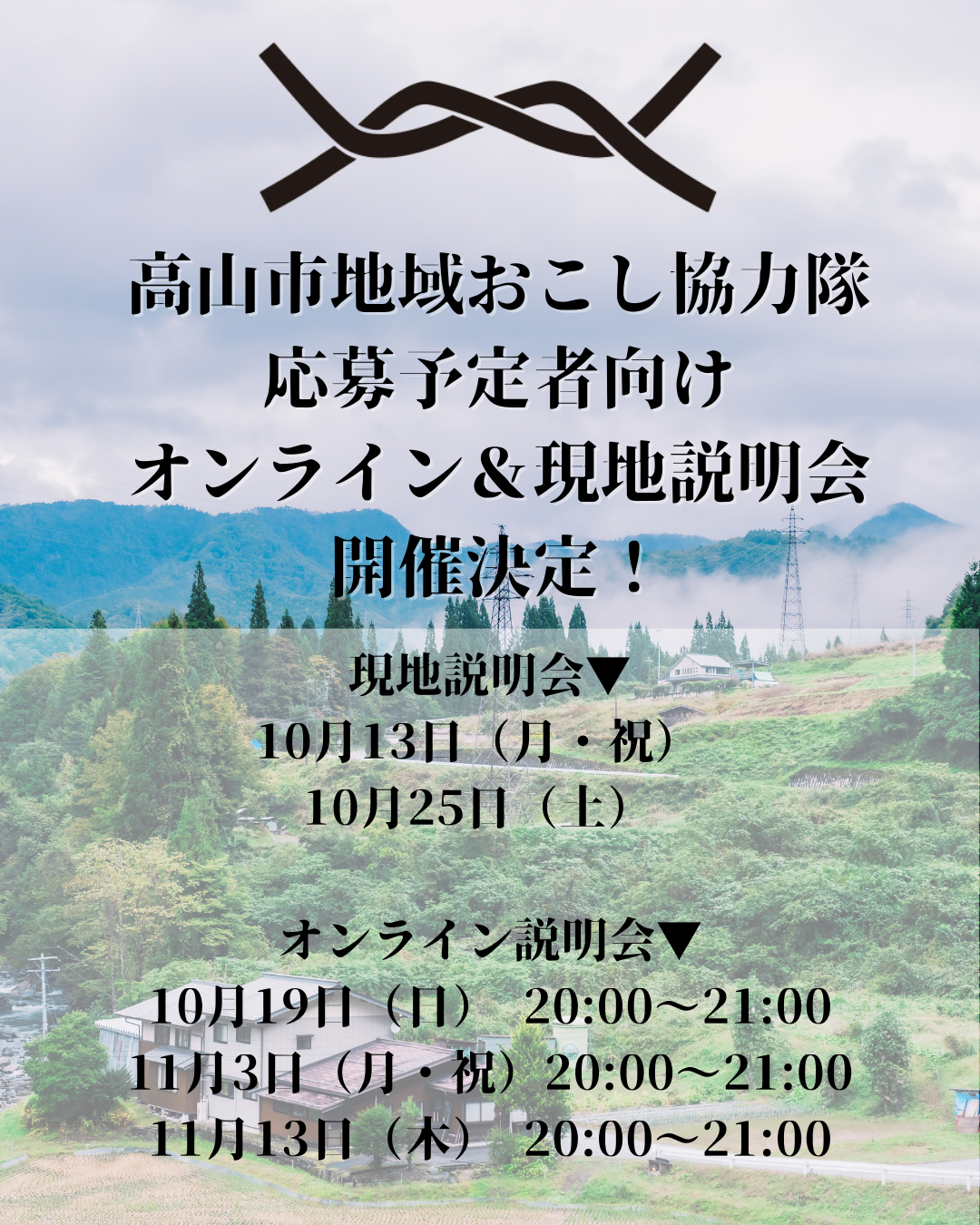 現地説明会&オンライン説明会について 高山市地域おこし協力隊